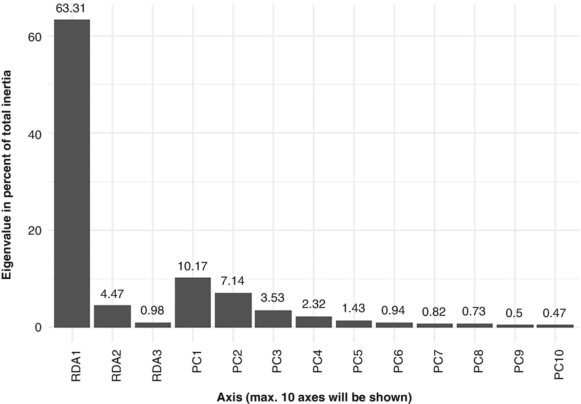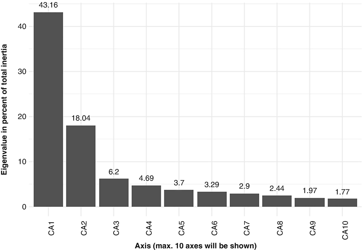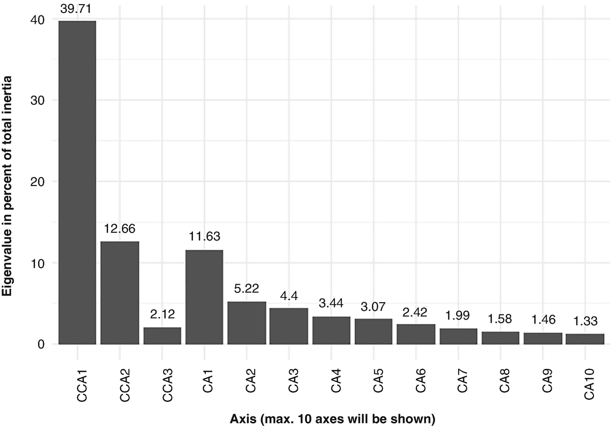 Scree plot generated by canonical correspondence analysis (CCA) based on QTRT1 data