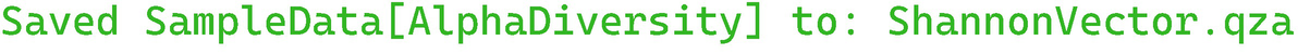A text reads, saved sample data, open bracket, Alpha diversity, closed bracket, to, S h a n n o n V e c t o r dot q z a.