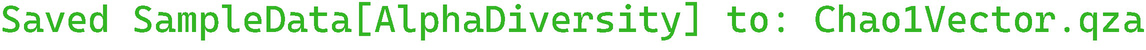 A text reads, saved sample data, open bracket, Alpha diversity, closed bracket, to, C h a o 1 V e c t o r dot q z a.