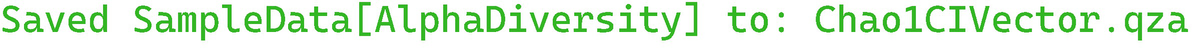 A text reads, saved sample data, open bracket, Alpha diversity, closed bracket, to, C h a o 1 C I V e c t o r dot q z a.