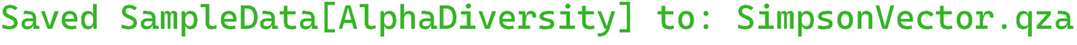 A text reads, saved sample data, open bracket, Alpha diversity, closed bracket, to, S i m p s o n v e c t o r dot q z a.