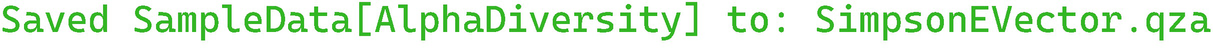 A text reads, saved sample data, open bracket, Alpha diversity, closed bracket, to, S i m p s o n E v e c t o r dot q z a.