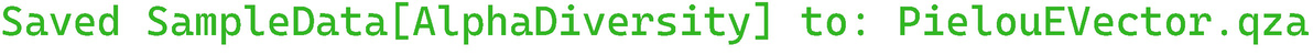 A text reads, saved sample data, open bracket, Alpha diversity, closed bracket, to, P i e l o u E v e c t o r dot q z a.