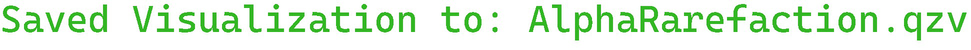 The above command generates two plots. The alpha rarefaction plot at top is primarily used to determine if the richness of the samples has been fully observed or sequenced. If the slope of lines in the plot approaches zero or “level out” at some sampling depth along the x-axis, then it suggests collecting additional sequences (taxa) beyond that sampling depth likely to be either rare microorganism or the result of the sequencing error. In other words, the slope of lines does not approach zero; then it indicates either too few sequences were collected and thus the richness of the samples hasn’t been fully observed yet or the data remains having a lot of sequencing error; thus it is mistaken to use this data for diversity analysis.